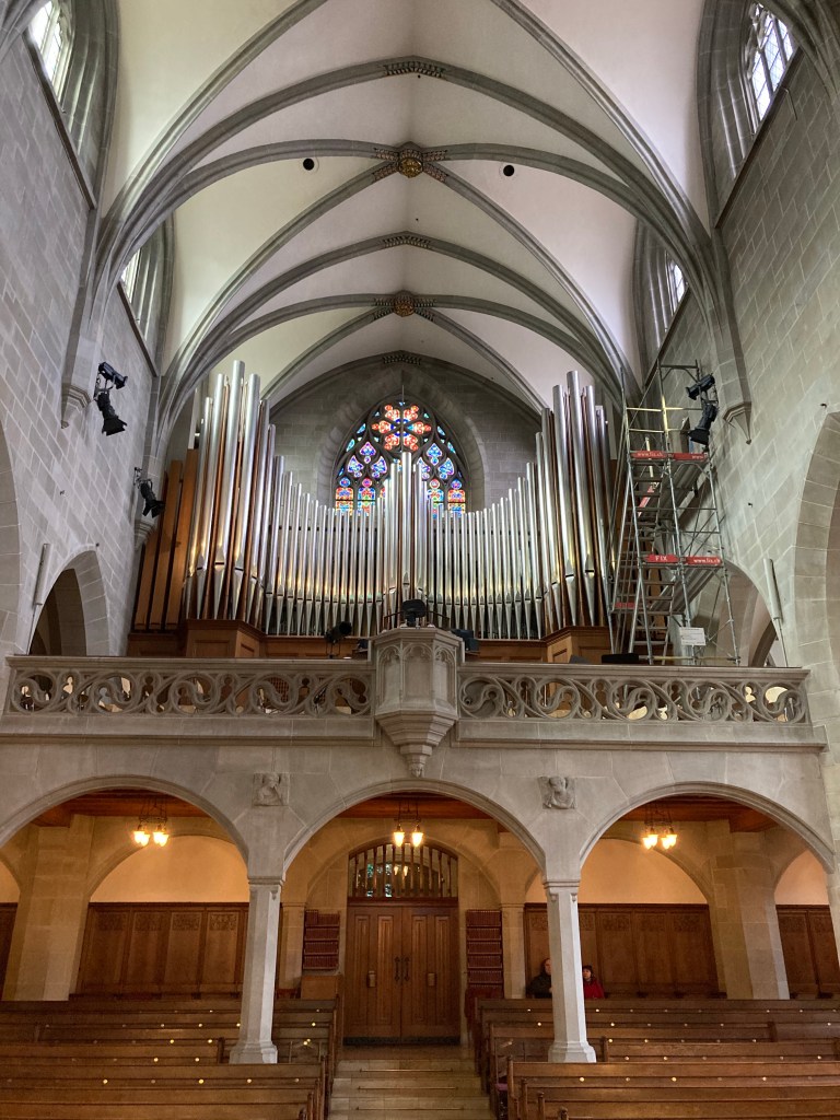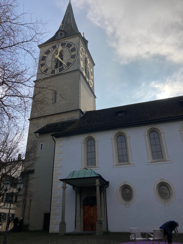 The final stop on the church train was the appropriately-named Großmünster (gross/groß means “large” in German) which is reminiscent to the Cathedral of Notre Dame in its twin-tower design. According to myth Charlemagne’s horse fell to its knees over the burial site of Zurich patron saints Felix and Regula, marking the origination of this 12th century building. It would later begin the Swiss arm of the Reformation movement and convert its allegiance to Protestantism.