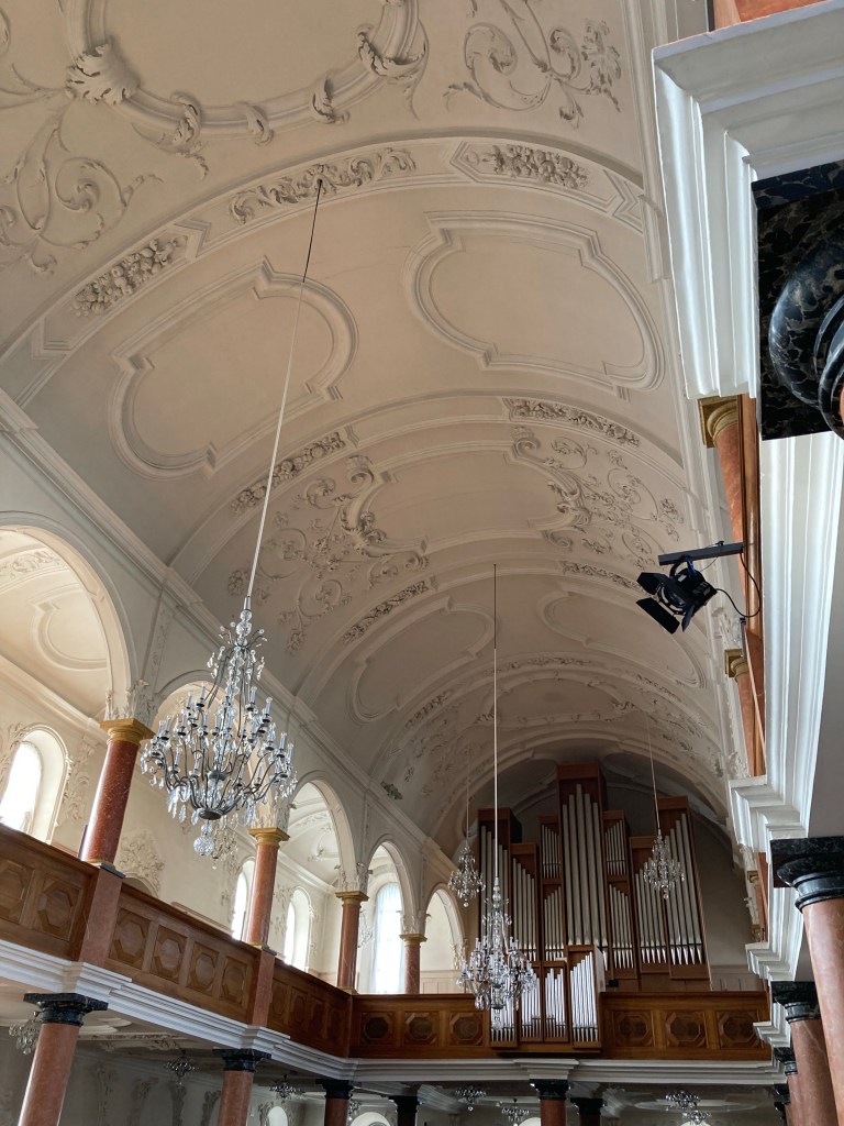 After blaspheming enough in one locale, I moseyed over to St. Peter and its massive clock face: the largest in Europe. The interior was no less impressive with ornate ceilings and individually-carved wood seating.