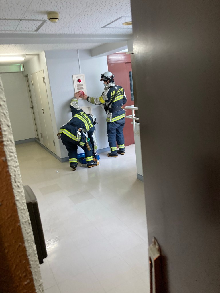 Well, this morning started different to say the least. An old actual-bell fire alarm in the 7th floor hallway went off, prompting both the locals and us foreigners to poke our heads out and wonder what the hell we’re supposed to do. The Japanese fire department arrived and silenced the alarm (no actual fire, and not even the supervisor of the building knows why it triggered in the first place), but at least I know I’m in good company being out of the loop on how to handle a non-emergency.