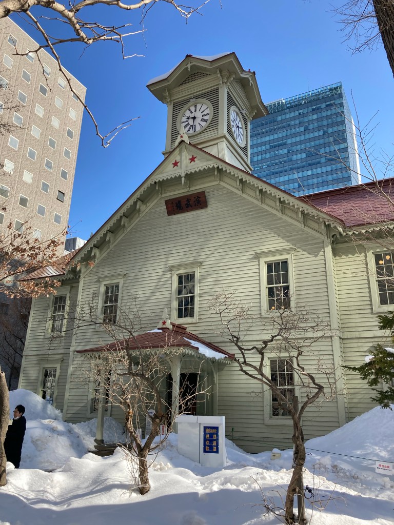 Despite being in the city for three days, I hadn’t really explored Sapporo proper and decided to remedy that. First on the list was the Sapporo Clock Tower, a 150 year old schoolhouse built in dedication to agricultural studies and the development of Hokkaido at large. Importing professors from various agricultural colleges in the United States, the building served as a military drill hall, model farm, prep school and other functions required to educate future pioneers in botany, farming, and area development. The clock itself was apparently too large for the original design, but the bell tower was modified to match.