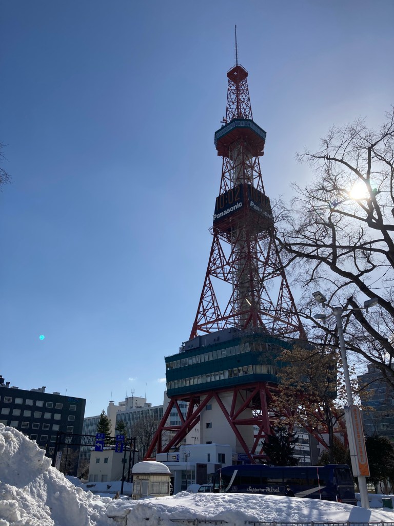 Not yet having my fill of towers, I moseyed over to the Sapporo TV Tower which overlooks the thirteen blocks of Odori Park. Built two years prior to Tokyo’s famous one, the first three floors are free to roam but the real view at the top costs 800 yen to see. I headed through the park below to see a famous sculpture/playground equipment called the Black Slide Mantra but unfortunately the season’s heavy snow made it appear like a utility fixture rather than an architectural marvel.