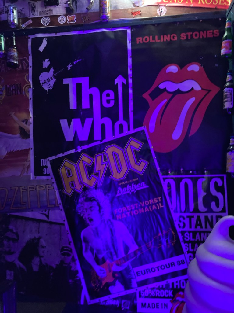 A long soak in the natural hot springs elevated both my body temperature and my spirits, so I decided to head to the Jersey Cafe (I met its owner at the beer cellar last night). This place was fantastic in its retro feel with awesome tour posters plastered on every surface along with knick-knacks of international pop culture ranging from Hanna Barbera to Hello Kitty. I sampled a wide range of local brews, whiskies, and local pub food favorites supplied by an izakaya downstairs.