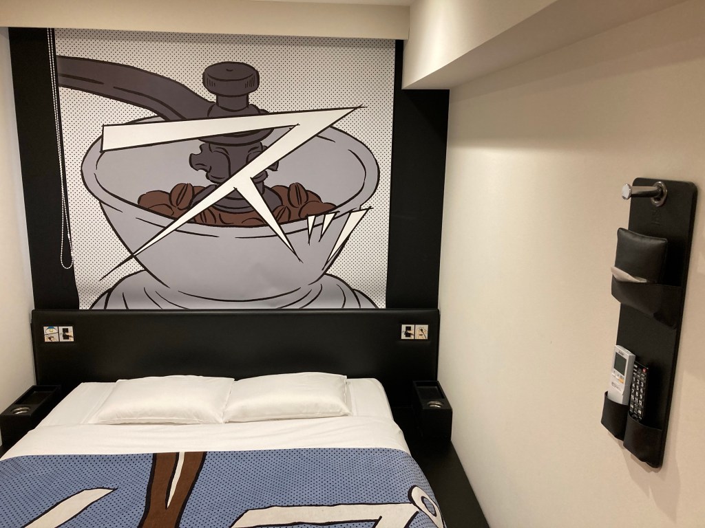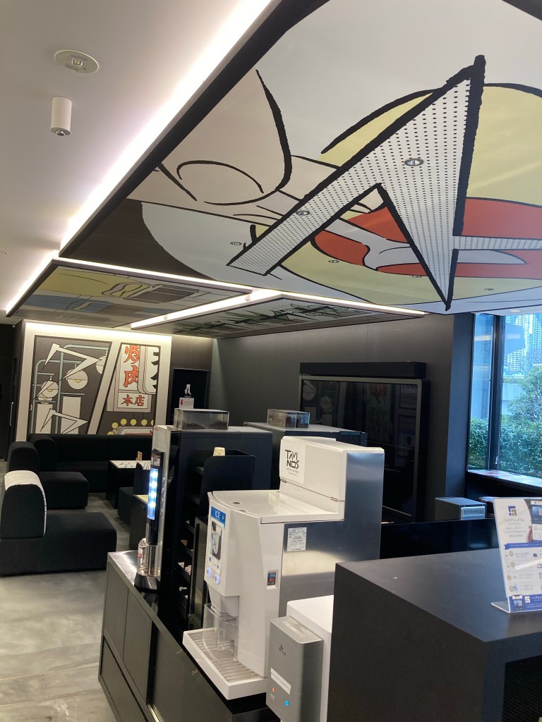 As seen above, the design motif takes after manga and Ben Day dot comics which are quite striking (there’s free manga for lending as well). Sufficiently settled, I decided to head to Odaiba Bay, one of the areas I had foregone on my previous journey to Japan. Trekking across the Rainbow Bridge (not the sad pet one), I felt the gales and sea foam which evoked the port city Tokyo’s roots stem from. Across the bay lie recognizable landmarks such as the Tokyo TV Tower, the Fuji TV “sphere”, and most of all the life-size Gundam statue which was light up in bright red through the “joints” of the mobile suit.