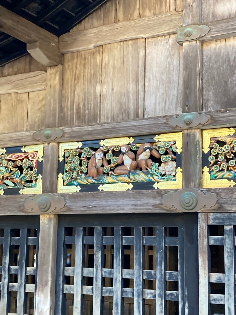 Toshogu Shrine was the first actual destination and houses the remains of Tokugawa Ieyasu, the shogun who united Japan after centuries of civil war and began the Edo period of peace & prosperity in 1610. His lineage continued to rule for over 250 years during the ‘sakoku’ (“chained country”) time of national isolation until the Meiji Era ushered in by Commodore Perry’s gunboats. Regardless, the site is a beautiful tribute to a beloved leader with several sections structured sorta like a question mark. The first structure notes is a stable with ‘three monkeys’ motifs along the outside; coincidentally this is where the expression “see no evil, hear no evil, speak no evil” comes from.