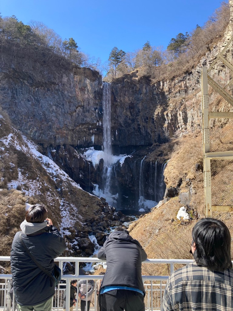 The last section is an acoustical wonder called the Crying Dragon, where a priest standing in a very specific unmarked spot underneath a massive dragon painting on the ceiling of a shrine can strike two wooden blocks together to produce an echo (nowhere else in the chamber does this happen). Photos and videos are not allowed, so you’ll just have to take my word. We piled into the minibus and headed to the Kagon waterfall next, considered one of the top three in the country. A 100m elevator takes you down to the roaring base which continues to flow down into Nikko as its main river. This waterfall is the sole egress from Lake Chuzenji which was formed by volcanic eruption two millennia prior. We took some time for photos and lunch before continuing onto the hot springs fed by subterranean thermal currents. Not going to lie, none of us made eye contact the ride home (it was a very small bathhouse…)
