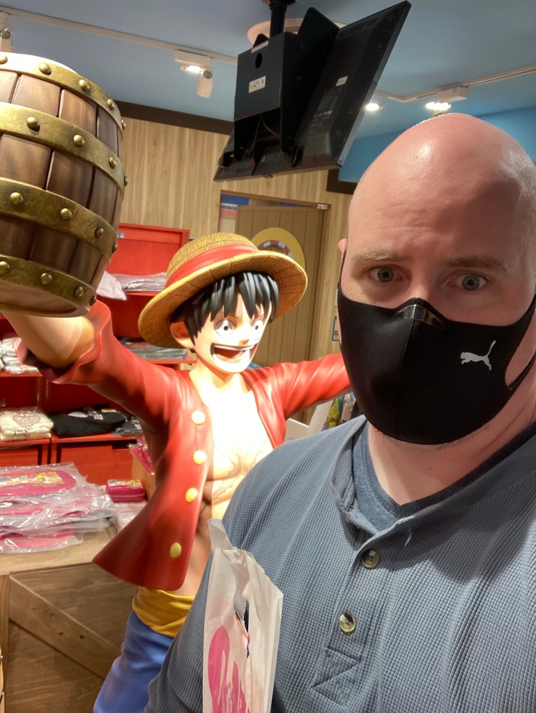 Jen split off to collect her pre-race materials while Ryan and I checked out Sunshine City, a multilevel mall with two destinations for weebs: the Pokémon Center and the One Piece Mugiwara Store. Both were packed with the Saturday crowds; the line to the register in the former wound around the interior walls until a worker with a signpost delineated the starting point (it actually moved along fairly quickly). The One Piece store had a different method of traffic flow: keeping people in the actual store to a minimum with the line wrapping around the outside (this one on the other hand took an hour to get in).